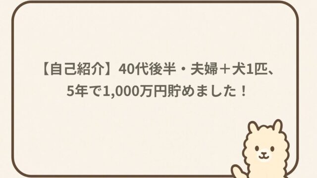 資産形成【自己紹介】40代後半・夫婦+犬1匹、5年で1,000万円貯めました!