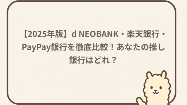 資産形成【2025年版】d NEOBANK・楽天銀行・PayPay銀行を徹底比較!あなたの推し銀行はどれ?