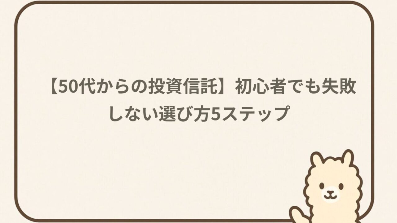この記事では、「アルパカのお金牧場」が、50代からでも安心して始められる投資信託の選び方を、わかりやすく解説します。